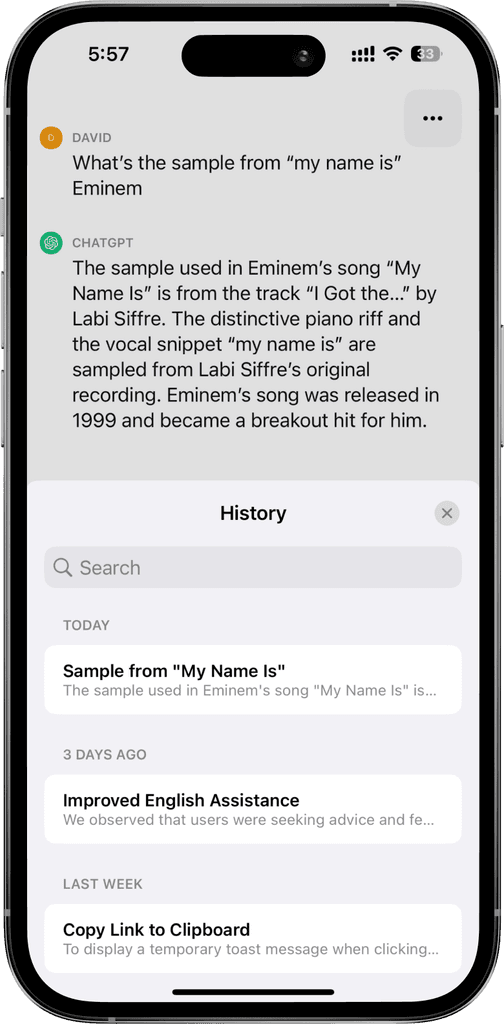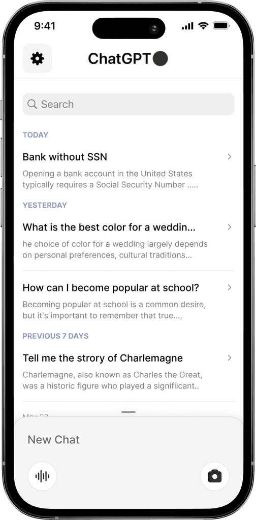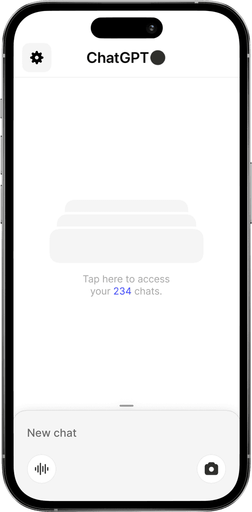 I decided to not display the history at the app opening, to let the user focus on the prompt he wants to make at that moment. Most of the time users open the app to create a new chat and not to dive into one the already close. This doesn't mean that the user can't access it quickly by clicking on the middle of the screen. In addition, it is displayed as soon as the user leaves the chat he has just created.